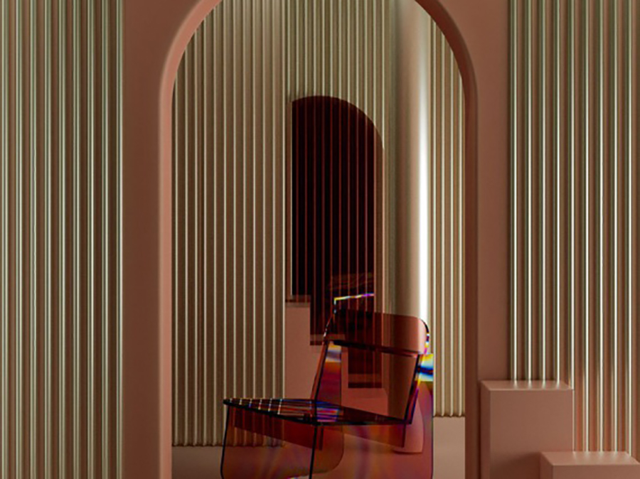 Модель Oil Chair сделана из нескольких скругленных пластин стекла со специальным покрытием, отражающим разные части светового спектра. Радужный эффект меняется в зависимости от угла обзора. В качестве креплений использованы прозрачные штифты, скрытые в толще материала.