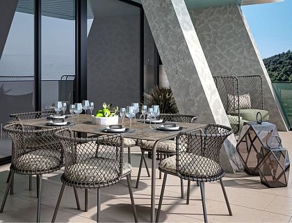 Современный интерьер с элементами средиземноморского стиля разработан для двухкомнатных апартаментов в премиальном жилом комплексе в Сочи. Квартира имела свободную планировку, поэтому интерьер разрабатывался с нуля, начиная с «нарезки» помещений. Важной частью проекта стало интегрирование инженерных решений (вентиляция, умный дом и т.п.) в дизайн апартаментов.