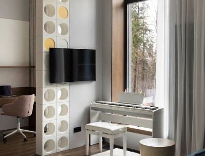 Квартира 75м.кв. для молодой семейной пары. В современном стиле с яркими акцентами и красивым видом.