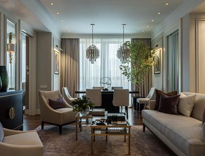 Пожелания заказчика были амбициозными: вместить гостиную, кухню-столовую, спальню, детскую, гардеробную и два санузла. В ходе планирования и реализации студия Виктории Власовой буквально «выкраивала» каждый сантиметр. Задача была выполнена, и к указанным помещениям добавились прихожая, холл и лоджия.