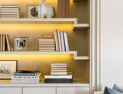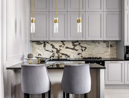 Московская квартира 83 м в классическом стиле. Для молодой женщины: комфорт, качество, благородный вид — современная классика в нейтральных тонах. Стандартную трёшку трансформировали в функциональное, просторное жильё: 10 помещений — включая санузлы, холл и гардеробную. Почти вся мебель изготовлена на заказ по авторским эскизам из‑за необходимости нестандартных размеров.