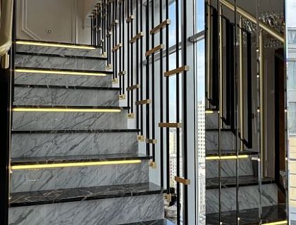 Реализованный проект квартиры в ЖК Садовые кварталы 140 м2 для семьи из 3 человек. Кухня-гостиная, мастер спальня с гардеробной, санузлом и балконом, детская комната, кабинет, детский санузел, мужской санузел и постирочная.