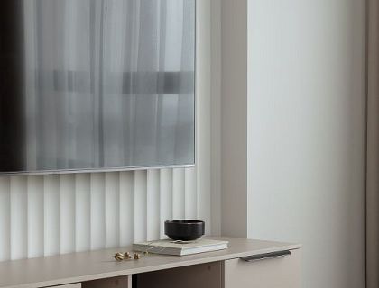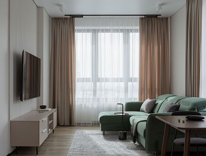 Этот интерьер своего рода мини резиденция для своих хозяев, которые проживают в просторном загородном доме и используют эту квартиру для гостевых визитов к детям. Поэтому в этом интерьере мы перенесли классическое настроение и тонкие нюансные сочетания, чтобы интерьер выглядел актуально как можно дольше.