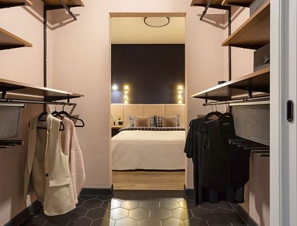 Клиенты покупали этот дом с готовой отделкой, перед началом проектирования напольные покрытия, двери, керамогранит в санузлах должны были быть сохранены. В итоге к этой базовой отделке мы добавили нейтральные оттенки фона и яркие акценты. Зону лестницы выделили неубиваемыми панелями из полиуретана в сочетании с керамогранитом. Вся общая зона — проходной коридор, кухня и гостиная выполнены в одних материалах — что делает пространство едиными стилистически и в то же время уютным.