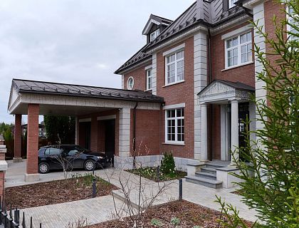 Загородный дом в Английском стиле на большую семью. Эксклюзивный камень- гранит Копакобана (Copacabana), ручной работы тераццо на полу и красный орех в отделке мебели создают вместе неповторимый стиль.