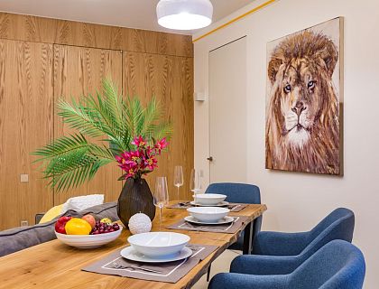 Студийное пространство с кухней-островом, мастер-спальня с гардеробной и санузлом, вторая спальня с рабочим местом, детская для близнецов и большая гостиная с акцентами современной классики и премиального уюта.