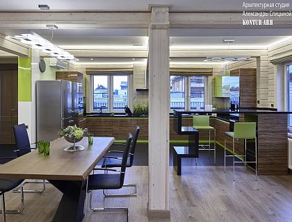 Загородный дом на начальном этапе проектирования значительно изменился после перепланировки выполненной дизайнерами Андреем и Екатериной Андреевыми. Так была полностью перепроектирована центральная лестница, ведущая на второй этаж, а также изменена планировка всего второго этажа. Из ненужного Хозяевам отдельного большого каминного зала, дизайнеры сделали гараж на два автомобиля, а над ним гостевую зону с двумя санузлами и отдельной лестницей из холла первого этажа.