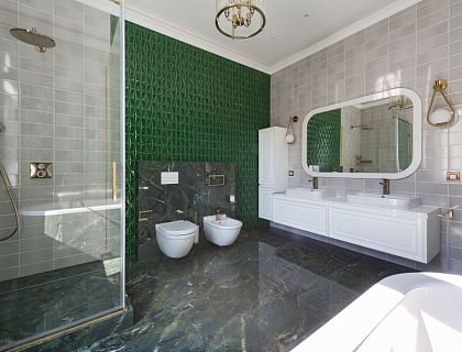 Фасады облицованы натуральным камнем (песчаником), цоколь из гранита, без штукатурок и покрасок, никакой бутафории, только натуральные природные материалы (как в дворцах Парижа), кровля с покрытием из натурального сланца и меди, оконные рамы деревянные, ограждения каменные и литые из бронзового сплава.