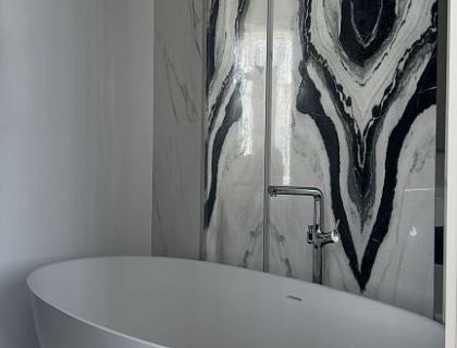 Реализованный проект квартиры в ЖК «Махаон» — наш второй проект для семьи из трёх человек. Первую квартиру мы делали десять лет назад. Здесь нет решений ради моды — всё продумано под их ритм жизни. Это вторичка со сложной планировкой: стояли перегородки, отделаны санузлы, установлена сантехника. Мы полностью пересмотрели план и создали современное, функциональное пространство.
