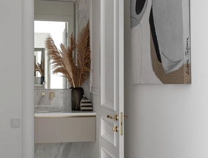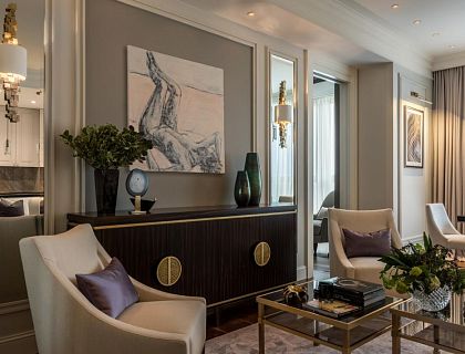 Квартира, расположенная в сталинском «фасадном» доме на Фрунзенской набережной, полностью обновленная для солидной пары. Дизайн интерьера в стиле современной классики. По традиции большая часть мебели выполнена по нашему дизайну: вся встроенная мебель, мягкая группа в гостиной, столы и комоды, а также диван от собственного бренда. Пошив текстильного оформления — также от нашего бюро.