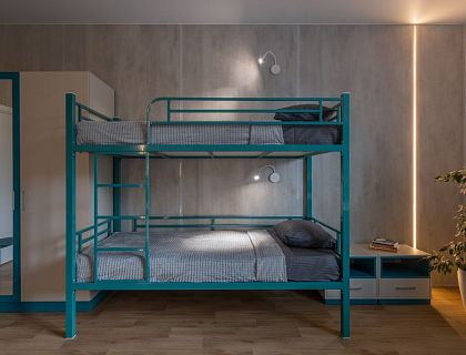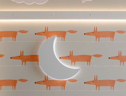 Винтажный шарм стал основой дизайна. Советские кресла, ковры с рисунком в духе домашней коллекции Gucci, живые растения — всё это создаёт особую атмосферу уюта и стиля. Акцентными деталями стали стены, расписанные в технике Color Block в фиолетовых, розовых и жёлтых тонах. На стенах представлены картины современных российских художников. Эти произведения не просто украшают пространство — они стали основой для будущих аукционов, которые проводятся в этих стенах.