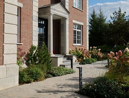 Загородный дом в Английском стиле на большую семью. Эксклюзивный камень- гранит Копакобана (Copacabana), ручной работы тераццо на полу и красный орех в отделке мебели создают вместе неповторимый стиль.