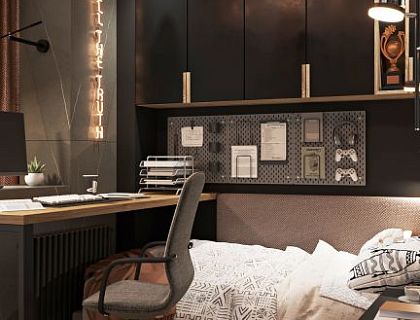 Проект был разработан для молодой пары, которой было важно создать уютное пространство, где всегда можно зарядиться теплом и светом домашнего очага. Для реализации была подобрана медовая палитра. В отделке были использованы отделочные материалы, демонстрирующие природный рисунок: камень, дерево, металл. В интерьере присутствуют графические элементы, выполненные ППУ молдингами или рейками из массива дерева. Световые приборы выполненные в современном исполнении.