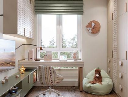 С трудом можно сказать, что этот проект только одной жилой комнаты, так как в этом пространстве организованы три основные зоны: рабочая, спальная и зона отдыха (гостиная). Проект был выполнен для молодого человека, который только в самом начале своего жизненного пути. Сложный интерьер - отражение его разносторонней личности.