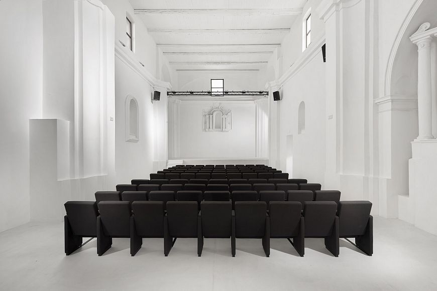 Снаружи оригинальное каменное здание почти не изменилось. Что же касается функциональной нагрузки, то церковь использовалась как арт-площадка с середины 50-х годов прошлого века. И вот в 2019 году администрация населенного пункта решила трансформировать внутреннее пространство. В первую очередь изменения коснулись отделки: стены и потолки были окрашены в белый цвет. Впрочем, кое-где в углах сводчатых ниш, на карнизе, в основании пилястр можно заменить элементы неокрашенной кладки. Это напоминание о славной истории постройки. Перед сценой имеется большой по площади полукруглый фрагмент оригинального пола, оставленный без отделки. В центре основного помещения установлены 90 черных кресел, на которых рассаживаются посетители киносеансов, зрители театральных постановок и участники конференций.