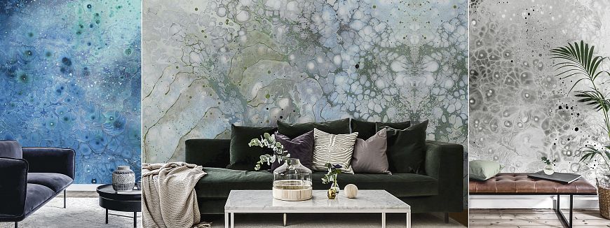 В больших студиях или кухнях с европланировкой (то есть совмещённых с гостиной) зачастую применяется приём цветового зонирования. То есть функциональные части пространства выделяются визуально цветом. Например, можно окрасить стены в разные цвета или применить яркие обои на акцентной стене. Меблировка в таком случае подбирается нейтральной и также различается в разных частях комнаты по цвету.
