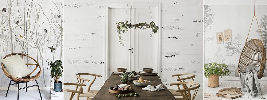 В открытых планировочных решениях самым традиционным способом разделения зон являются перегородки. Стеклянные перегородки особенно популярны в современных интерьерах в стиле сканди. Перегородки делятся на два вида: раздвижные и стационарные. Раздвижные часто используются вместо дверей, а стационарные заменяют собой стены. В интерьерах эко-стиля особенно популярны стационарные перегородки в виде деревянных балок.