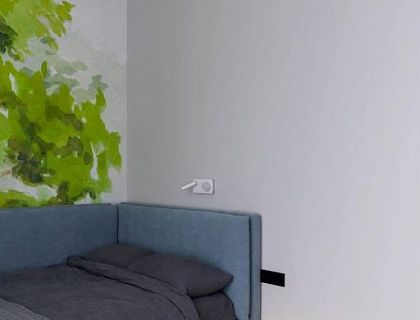 Проект студии 22 кв.м. Основная идея проекта - гармония стихий: земли, воздуха и воды. Природные цвета: жаркий песок и летнее небо; плавные, как капля воды формы, естественность.