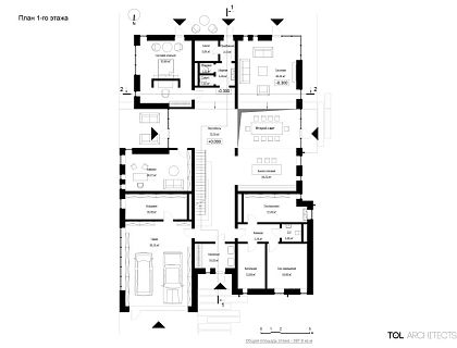 Вилла в Тимошкино / коттеджный посёлок Шато Соверен / Московская область Архитектор Вадим Тополев Основной задачей при проектировании дома была смена уклада жизни семьи в мегаполисе на более спокойную жизнь за городом. ТЭП Площадь участка 2145 кв. м Площадь застройки 742 кв. м из в неё: Площадь пятна застройки дома 484 кв. м Площадь террасы 225 кв. м Общая площадь дома 827.6 кв. м. Официальный сайт студии → tolarch.ru