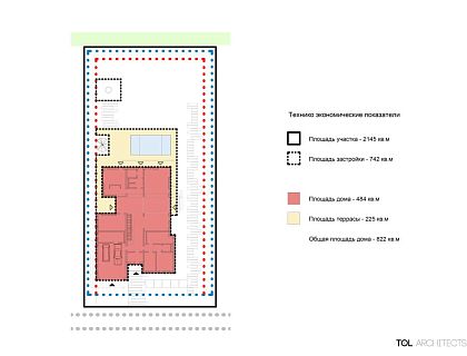 Вилла в Тимошкино / коттеджный посёлок Шато Соверен / Московская область Архитектор Вадим Тополев Основной задачей при проектировании дома была смена уклада жизни семьи в мегаполисе на более спокойную жизнь за городом. ТЭП Площадь участка 2145 кв. м Площадь застройки 742 кв. м из в неё: Площадь пятна застройки дома 484 кв. м Площадь террасы 225 кв. м Общая площадь дома 827.6 кв. м. Официальный сайт студии → tolarch.ru
