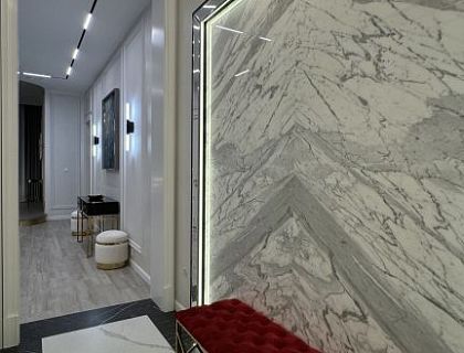 Реализованный проект квартиры в ЖК Садовые кварталы 140 м2 для семьи из 3 человек. Кухня-гостиная, мастер спальня с гардеробной, санузлом и балконом, детская комната, кабинет, детский санузел, мужской санузел и постирочная.