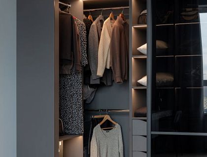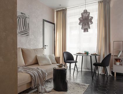 Этот интерьер своего рода мини резиденция для своих хозяев, которые проживают в просторном загородном доме и используют эту квартиру для гостевых визитов к детям. Поэтому в этом интерьере мы перенесли классическое настроение и тонкие нюансные сочетания, чтобы интерьер выглядел актуально как можно дольше.