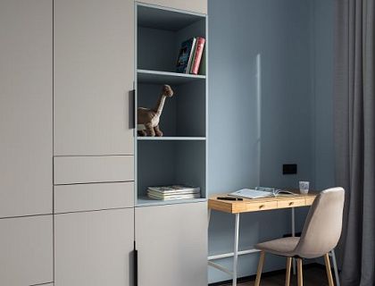 Это реализация давней мечты, взять убитую квартиру и с нуля построить там все с нуля. Изначально это двухкомнатная квартира с комнатами-вагончиками и отдельной кухней. В ходе работ, кухню и гостиную объединили в общее пространство, а из второй длинной комнаты сделали компактную детскую комнату и спальню с проходным гардеробом. Сам интерьер содержит ретро-нотки, для того, чтобы гармонировать с домом, имеющим долгую историю, в котором расположена квартира.