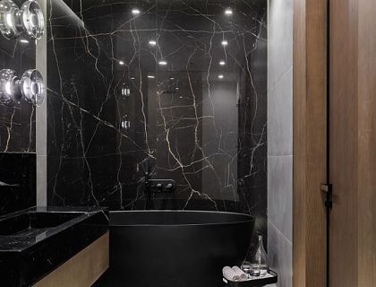 Подвесная итальянская кухня Bizotto Infinity с мягкой подсветкой и параллельной планировкой. Фасады в перламутровом сверхглянце наполняют пространство светом и изяществом. Столешница из кварцевого агломерата, техника Gaggenau и аксессуары Blanco создают гармонию красоты и функциональности.