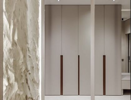 Интерьер выполнен в современном стиле в спокойной кремово-бежевой гамме с графитовыми акцентами. Для этого интерьера мы спроектировали множество авторских решений, таких как стеновые панели в гостиной и спальне, мебель для детских и ванных комнат. Наша команда тщательно поработала над созданием нескольких световых сценариев в каждом помещении для создания любого настроения в интерьере. В интерьере использованы такие бренды как Henge, Misura Emme, Vibia, Flou.