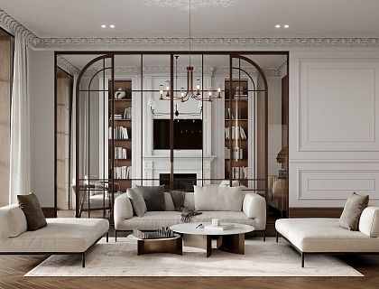 Квартира в ЖК «Серебряный фонтан», площадью 94 кв.м Создана для семьи из четырех человек. Пожелание заказчиков - сделать функциональный интерьер с изолированными комнатами для детей с продуманными зонами хранениями в современном стиле с элементами неоклассики.