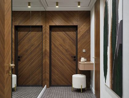 От интерьера заказчики в своей квартиры хотели спокойствия и умиротворения, чтобы после трудового рабочего дня можно было с легкостью расслабиться. Они так и сказали на первой встрече: «Хочется возвращаться домой и максимально расслабляться, чтобы ничего не давило». Поэтому интерьер лаконичный, чистый и выверенный. Без обилия цвета — это тоже было одним из пожеланий клиента.