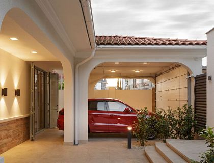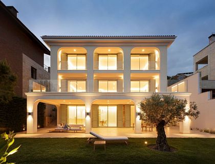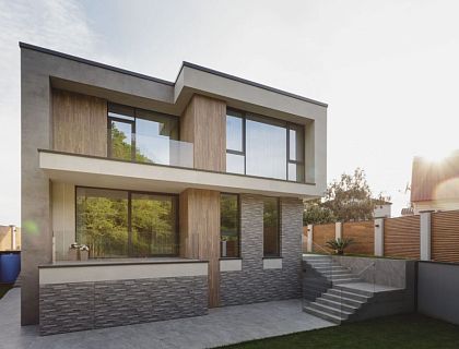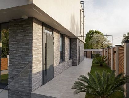 Villa Neoshale — проект ArchiNova Studio в Мацесте, где классический стиль шале получил современное прочтение. Мы совместили его с минимализмом, подчеркнули пластику панорамными витражами и создали лаконичный образ, органично вписанный в горный ландшафт. Фасады выполнены в комбинации белой камешковой штукатурки и натурального камня, что придало архитектуре элегантность и выразительность.