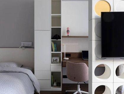 Проект квартиры-студии для бизнес-прилетов молодой девушки. Не под аренду, только для себя: пару дней перекантоваться и улететь дальше.