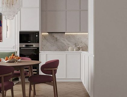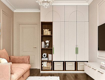 Проект представляет собой создание стильного и элегантного интерьера квартиры в стиле французская классика с элементами винтажа, который сочетает в себе роскошь, утонченность и уют. Основная идея — подчеркнуть изысканность французского шика, добавив нотки винтажной романтики и драматизма, что достигается использованием декоративных деталей, антикварных элементов и мягких пастельных тонов.