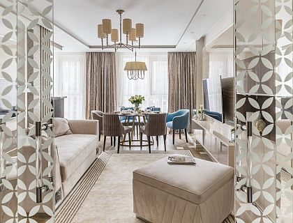 Изысканный дизайн в квартире на Луначарского 11, в ЖК "Поэма у 3-х озер". За основу была взята идея – объединить разные концепты, близкие душе каждому из членов семьи: Старая добрая нестареющая классика, Модерн в лучшем его исполнении, Хай-тек с уклоном в спортивную сторону для самого младшего члена семьи. Разные техники декора, добавление интересных акцентов и превращение стен квартиры в удивительные полотна, на которых, кажется, разворачивается целая история....