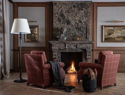 Фото интерьера, Гостиная площадью 30 кв.м. Проект Камин - Загородный дом в поселке Трувиль, Автор проекта: Архитекторы Павел Бурмакин