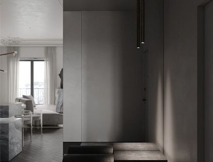 Двухэтажное помещение с панорамными окнами. Под неудачным ремонтом последних лет скрывалась отлично сохранившаяся кирпичная кладка и потрясающая лепнина советских лет, украшающая потолок второго этажа. Кладка и лепнина были сохранены и дополнены необычными элементами из металла.