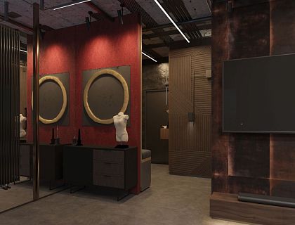 Дизайн-концепция торгового зала разработана с учетом его проходимости, расположения торговых площадей, входной группы, зоны перехода в соседний корпус и других функциональных зон. Креативный дизайн, разработанный дизайн-студией «Андреевы.РФ» создает эффектный и запоминающийся интерьер, отвечающий функциональным требованиям пространства.