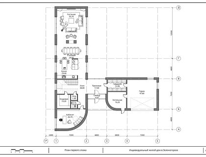 Проект современной виллы в Карелии. Участок располагается на берегу озера среди соснового леса, поэтому структуру дома мы спланировали таким образом, чтобы из всех основных помещений виллы открывался вид на озеро. Конструкция стен и перекрытий — монолитный железобетон, кровля плоская. Общая площадь дома 625 м.кв.