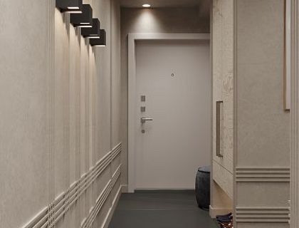 Проект был разработан для молодой пары, которой было важно создать уютное пространство, где всегда можно зарядиться теплом и светом домашнего очага. Для реализации была подобрана медовая палитра. В отделке были использованы отделочные материалы, демонстрирующие природный рисунок: камень, дерево, металл. В интерьере присутствуют графические элементы, выполненные ППУ молдингами или рейками из массива дерева. Световые приборы выполненные в современном исполнении.