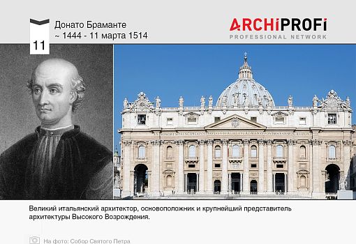 Донато Браманте - выдающийся итальянский архитектор, основоположник и крупнейший представитель архитектуры Высокого Возрождения.