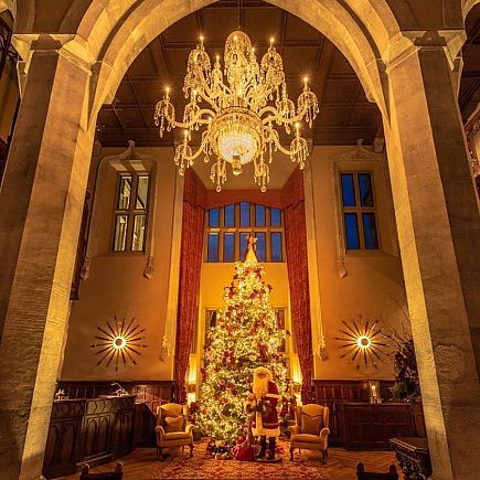 Благородная ель в Оук-холле ирландского Ashford Castle, датируемого 1228 (!) годом, - хорошая и давняя традиция, которая соблюдается больше 100 лет.