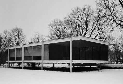 Для работ архитектора характерно использование строгих геометрических форм. Творчество ван дер Роэ оказало заметное влияние на следующие поколения архитекторов. Людвиг Мис ван дер Роэ стремился к предельной простоте своих сооружений. Его постройки, выполненные обычно из стали и стекла, отличает четкое пропорциональное решение как основной массы здания, так и его внутреннего пространства, а также подчеркнутый акцент горизонталей и вертикалей.