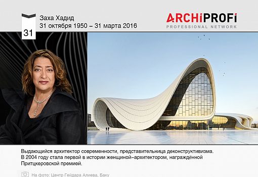 Заха Хадид - выдающийся архитектор современности, представительница деконструктивизма. В 2004 году стала первой в истории женщиной-архитектором, награждённой Притцкеровской премией. Обладательница Золотой медали Британского королевского института архитектуры и других престижных профессиональных наград в области архитектуры и дизайна.