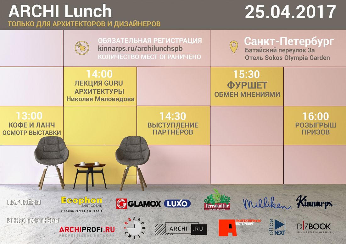 Каковы ключевые тренды в проектировании корпоративных интерьеров? Что нужно заказчику сегодня? Какие технологии и предметы интерьера позволяют предлагать клиентам стильные и эргономичные рабочие пространства? Об этом и многом другом поговорят архитекторы и дизайнеры в рамках традиционного Archi Lunch, организованного компанией Kinnarps.