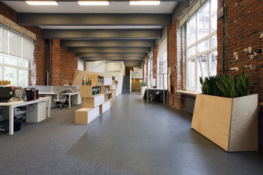 Archiprofi: Верно ли, что декоративная составляющая концепции интерьера агентства «Свое мнение» строится на контрасте между оригинальной кладкой, темным и светлым деревом? Какие еще приемы вы использовали в этой работе?