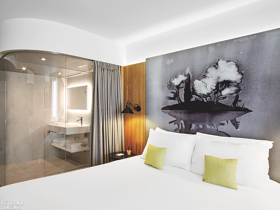 Пятиэтажная дизайнерская гостиница на 48 номеров находится недалеко от Лувра. Ее владелица – одна из основателей ежегодной парижской выставкиDrawing Now Карин Тиссо. Именно Карин пришла в голову идея нанять шесть разных современных художников для того, чтобы создать декор холлов отеля. И дать им карт-бланш. Естественно, ни один этаж здания не похож на другой. На верхнем (автор – художник из Швеции Томас Брум) можно наблюдать игру перспектив, оформление в серых тонах с элементами шрифтового дизайна. Декор четвертого этажа выполнен акварелистом Франсуазой Петрович с использованием зеленых оттенков. Третий уровень (Клеман Баго) отличается черными стенами и цветными стеклянными панелями. На втором Абделькадер Беншама более двух недель рисовал вручную деревья и растения акриловыми красками. На первом этаже царят психоделические граффити дуэтаLek & Sowat.