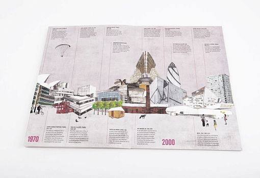 Многовековая история мировой архитектуры от неолита до современной эпохи уместилась в одной книжке-раскладушке, иллюстрированной известной лондонской художницей Люси Далзель (Lucy Dalzell). Ее восхитительные рисунки демонстрируют читателям 70 наиболее знаковых зданий в мире с коротким пояснительным текстом к ним. На обороте можно найти более подробные и доступные сведения об основных направлениях развития мировой архитектуры. В раскрытом состоянии длина книги составляет более двух метров, ее можно поместить на стену в качестве необычного предмета интерьера, либо использовать как обыкновенное печатное издание. Книга Далзель пестрит также крошечными фотографиями людей и животных, «вживленными» в изображения архитектурных объектов. Так, маленькая обезьяна «карабкается» по Gateway Arch, самой высокой арке в мире; а на другой странице лисенок взирает на лондонскую галерею искусства Tate Modern. Интерес к книге проявляют не только дети, которым она поможет в написании различных контрольных и рефератов, но и взрослые ценители архитектуры и искусства.