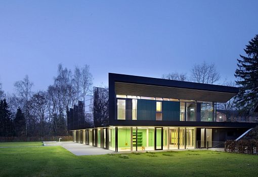 Архитектурное произведение в авангардном стиле выполняет функции детского сада в Марбурге (Германия). Компактное двухэтажное здание Nursery +E от архитекторов Opus Architekten располагает 335 кв.м. полезных площадей. Сооружение будто собрано из отдельных элементов угловатой формы, при этом благодаря нетривиальному исполнению кровли удалось увеличить площадь солнечных батарей. Здание в зеленых тонах со стеклянным фасадом органично интегрировано в окружающее пространство.
