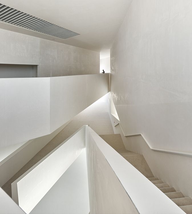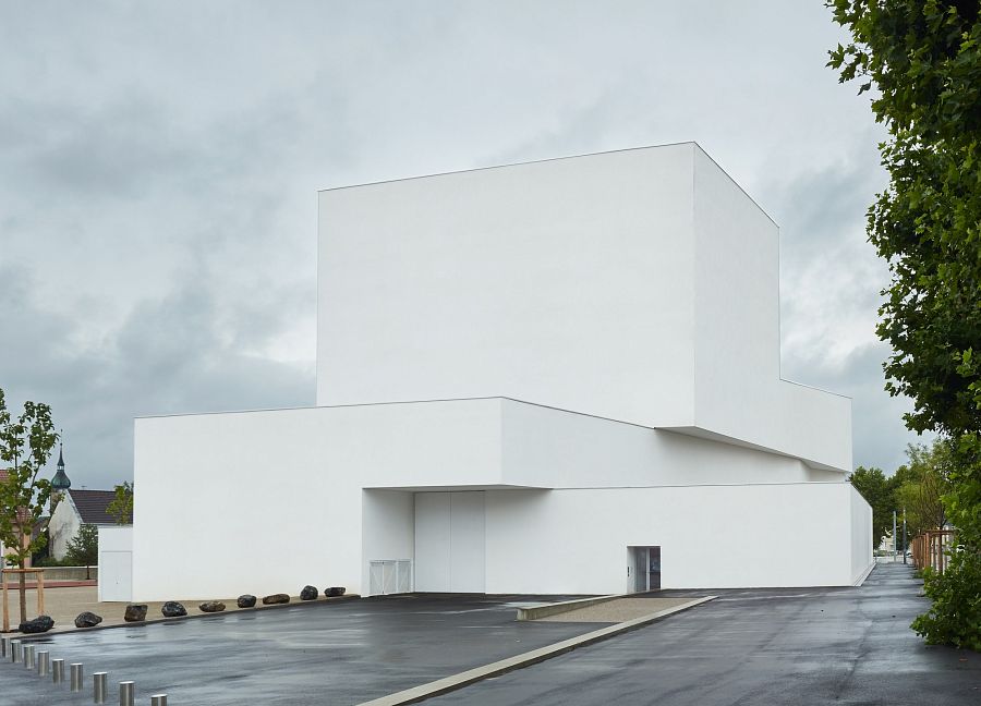 Новое здание (проект знаменовал собой начало регенерации городских общественных зон) расположено в самом центре Мерлебаха, неподалеку от крупного торгового центра. Белый минималистский объем хорошо просматривается со всех прилегающих улиц. Внутри запроектирован зал на 700 мест, просторный вестибюль, другие общественные и логистические зоны. Продуманная инсоляция помещений заставляет интерьер в буквальном смысле слова играть! Дневной свет необычайно важен в этом проекте; он помогает выявить геометрическую четкость белых оштукатуренных плоскостей и объемов во внутреннем пространстве театра. Сам зрительный зал оформлен исходя из принципа контраста: колористическое решение предполагало использование красного, розового и оранжевого цветов.